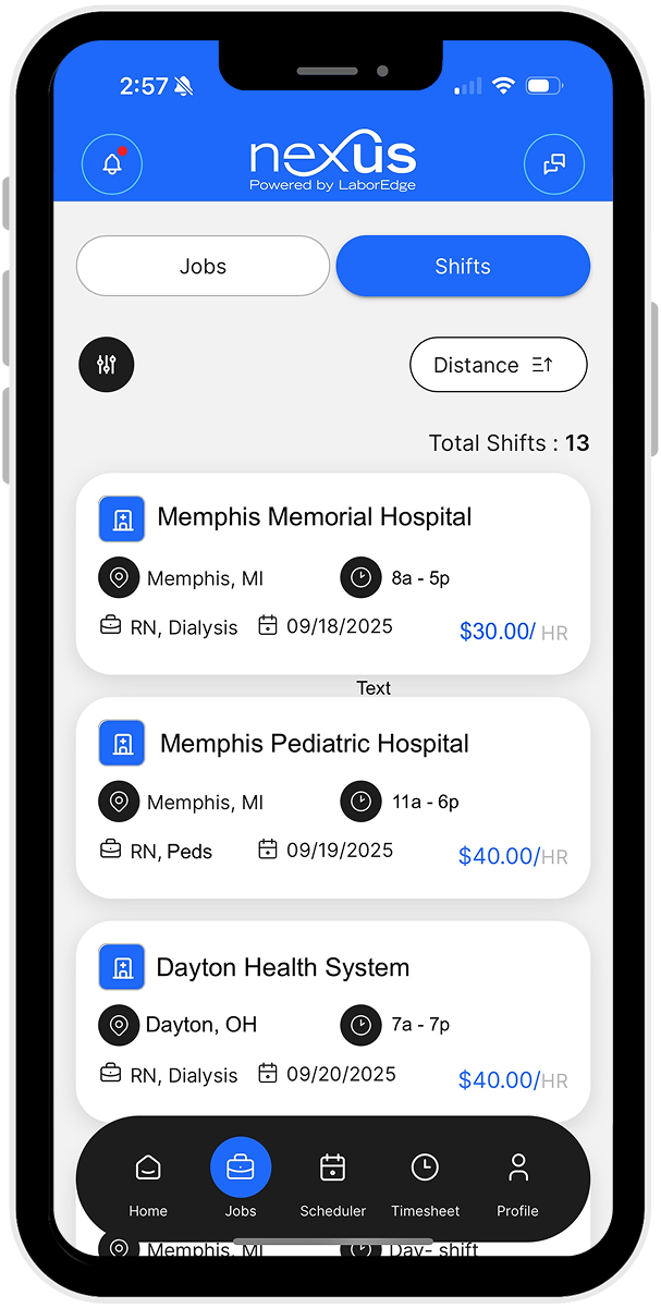 Our innovative mobile application is designed to speed up healthcare staffing processes and eliminate candidate frustration caused by outdated methods. Join the many other successful healthcare agencies who have already made the switch to NexusMobile.